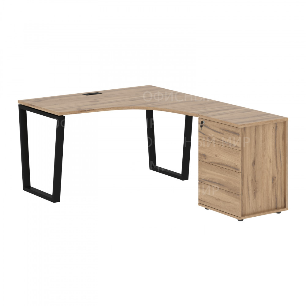 Стол эргономичный с тумбой EVCET 1318(R) Дуб Денвер светлый/Черный 1360х1880х750 EDIS