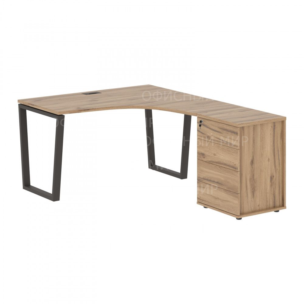 Стол эргономичный с тумбой EVCET 1318(R) Дуб Денвер светлый/Мокко 1360х1880х750 EDIS