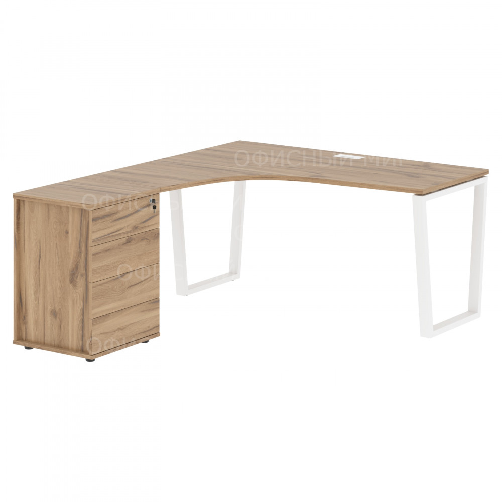 Стол эргономичный с тумбой EVCET 1518(L) Дуб Денвер светлый/Белый 1560х1880х750 EDIS