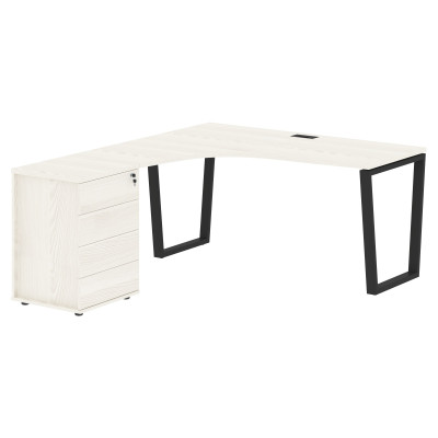 Стол эргономичный с тумбой EVCET 1518(L) Ясень Траун/Черный 1560х1880х750 EDIS
