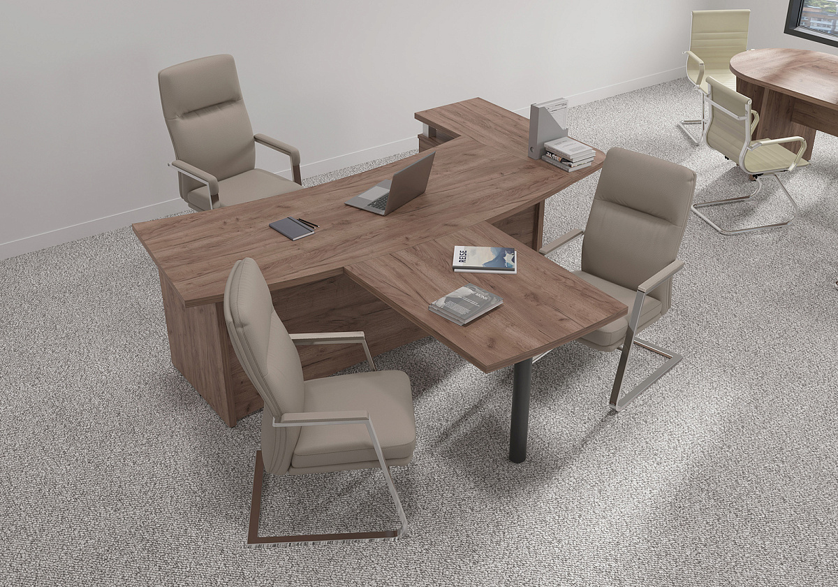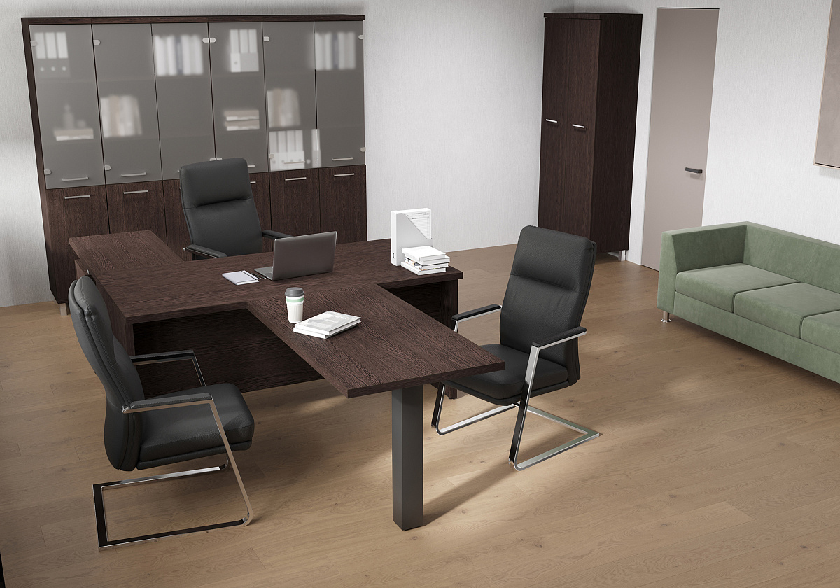 Кабинет руководителя First — это образец классической элегантности и строгости в офисном интерьере.  Цветовые решения в эстетичных оттенках придают пространству солидность и статусность. Широкий ассортимент моделей позволяет выбрать необходимое решение для любого офиса, объединяя функциональность и шарм.