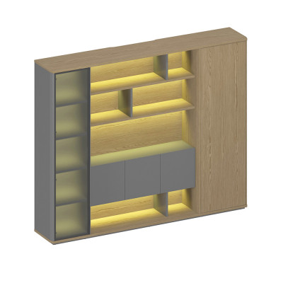 • в открытой секции шкафа комбинированного с подсветкой: для дверей толщиной 16 мм и декоративных боковых стенок толщиной 30 мм используется плита МДФ, окрашенная со всех сторон матовой эмалью цвета антрацит;