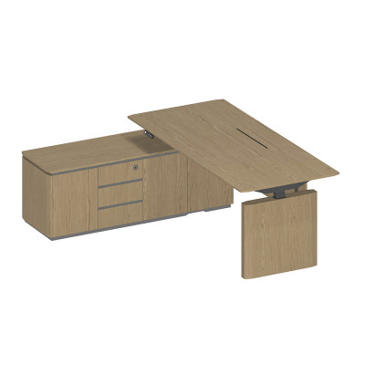 • Подъемный электрический механизм в столах руководителя для работы «сидя-стоя» с памятью четырёх уровней высоты, которые легко устанавливаются кнопками, что создает дополнительный комфорт в течении рабочего дня.
