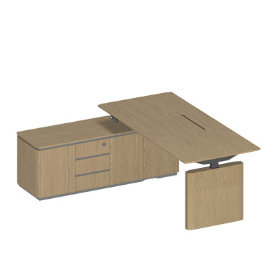 • Подъемный электрический механизм в столах руководителя для работы «сидя-стоя» с памятью четырёх уровней высоты, которые легко устанавливаются кнопками, что создает дополнительный комфорт в течении рабочего дня.