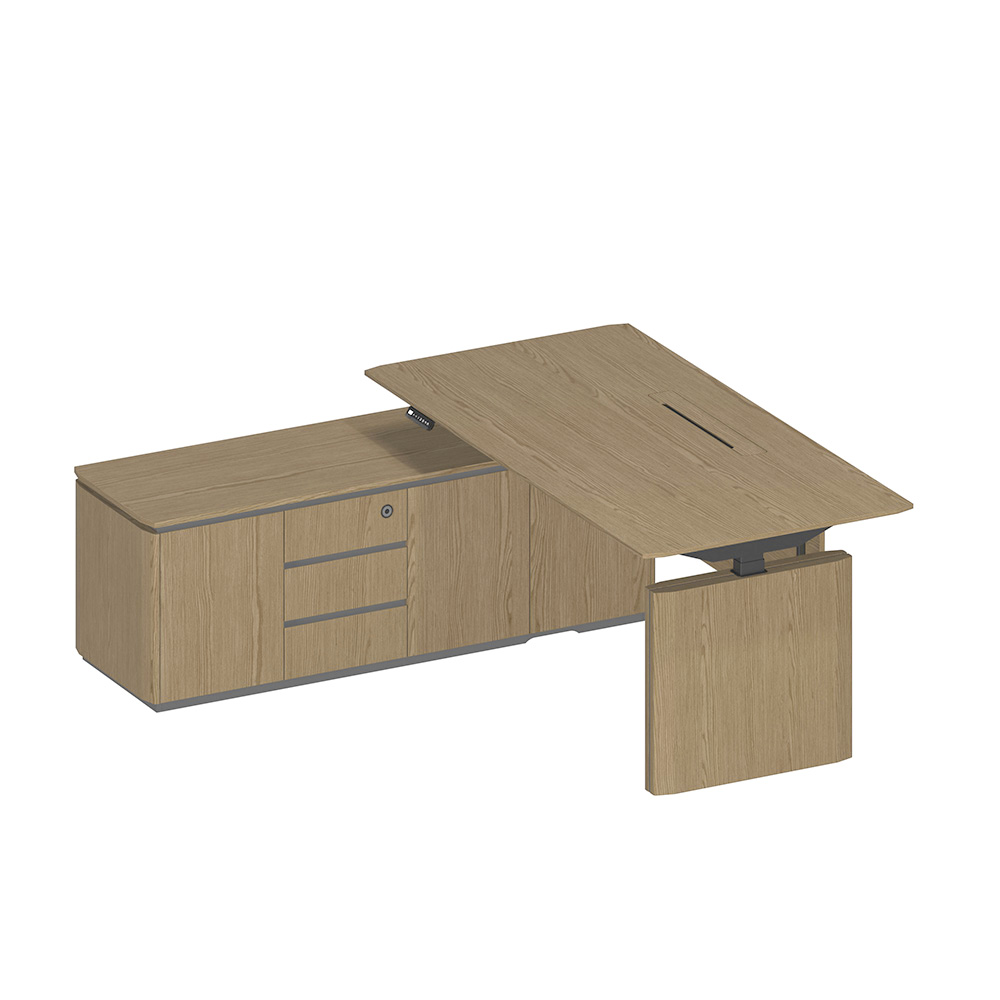 • Подъемный электрический механизм в столах руководителя для работы «сидя-стоя» с памятью четырёх уровней высоты, которые легко устанавливаются кнопками, что создает дополнительный комфорт в течении рабочего дня.
