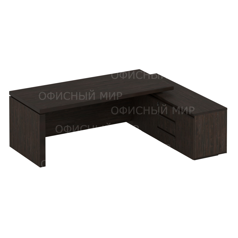 Стол руководителя угловой на опорной тумбе с ящиками.