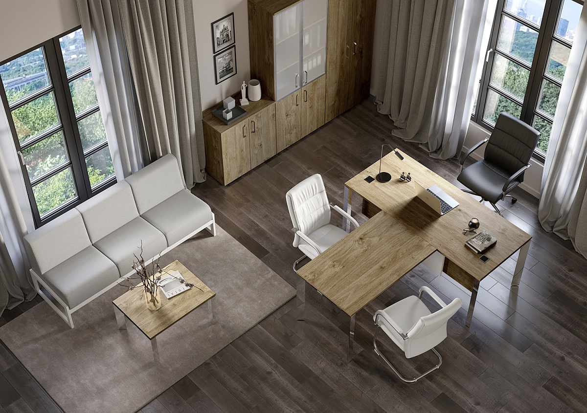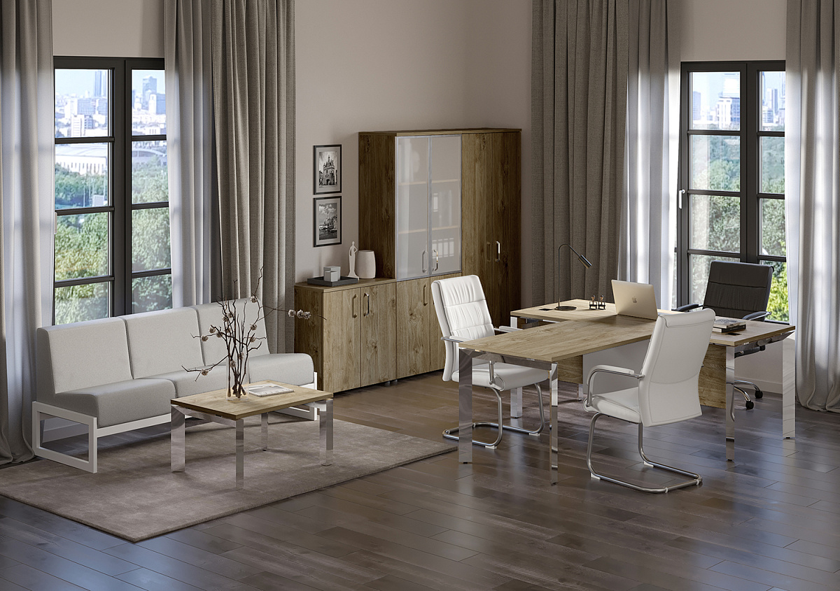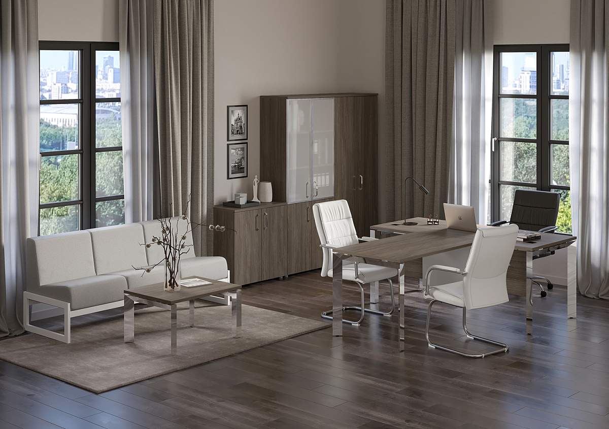 Onix Direct Lux Стол руководителя П-обр. м/к M-O.MP-SRR-6.8 Дуб Аттик/Нержавеющая Сталь/Хром 1980*80