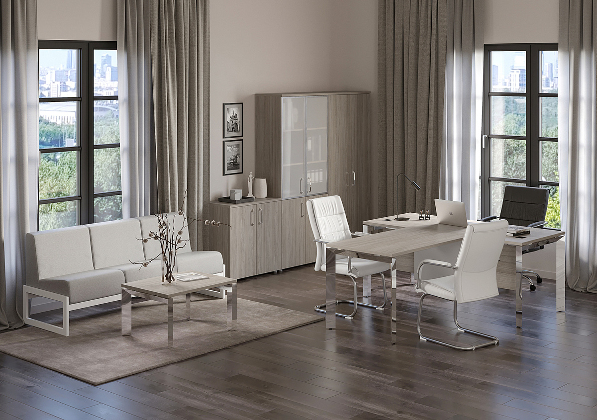 Onix Direct Lux Стол переговорный П-обр. м/к M-O.MP-PRG-19 Дуб Аттик/Нержавеющая Сталь/Хром 1980*980
