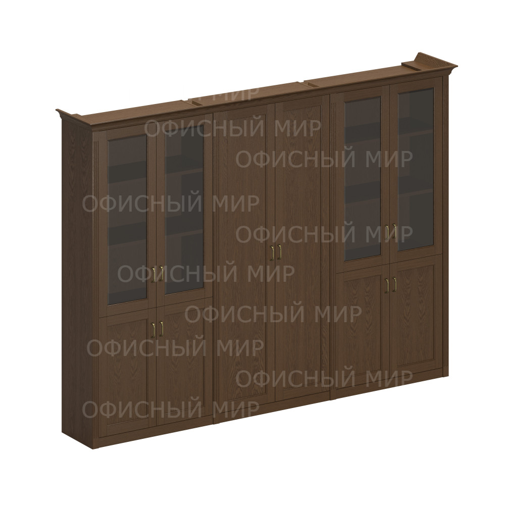 Шкаф комбинированный высокий (2 для документов со стеклянными дверями + 1 для одежды с дополнением) ПС 355 ДМ дуб мелвилл
