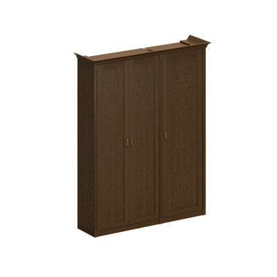 • Боковые и промежуточные декоративные панели шкафов выполнены из шпонированной плиты МДФ с брусками утолщения из плитных материалов и имеют общую толщину 50 мм; фронтальные лицевые торцы панелей обложены массивом дуба с продольными декоративными канелюрами.