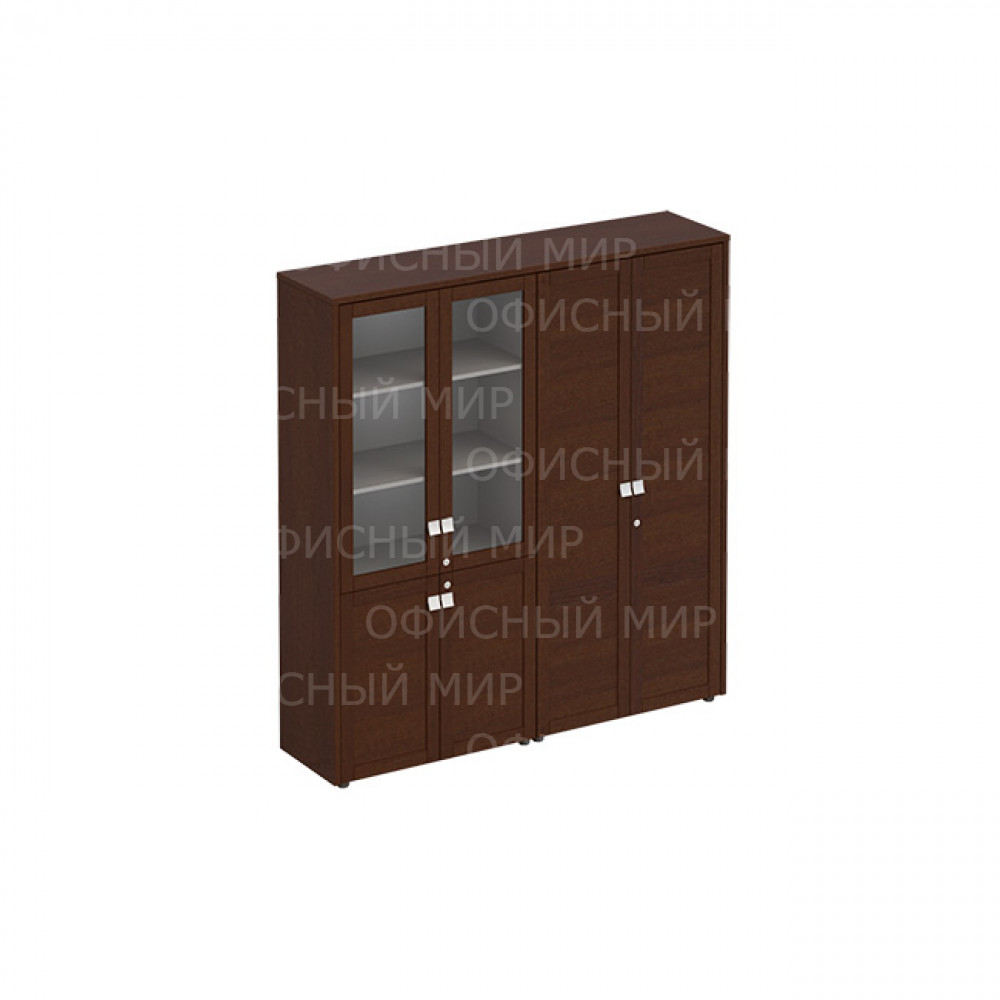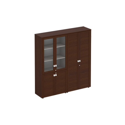 • Шкаф укомплектован двумя стеклянными дверями в рамке и четырьмя дверями из ЛДСтП филенчатой конструкции; замки установлены на всех правых дверях каждой секции
