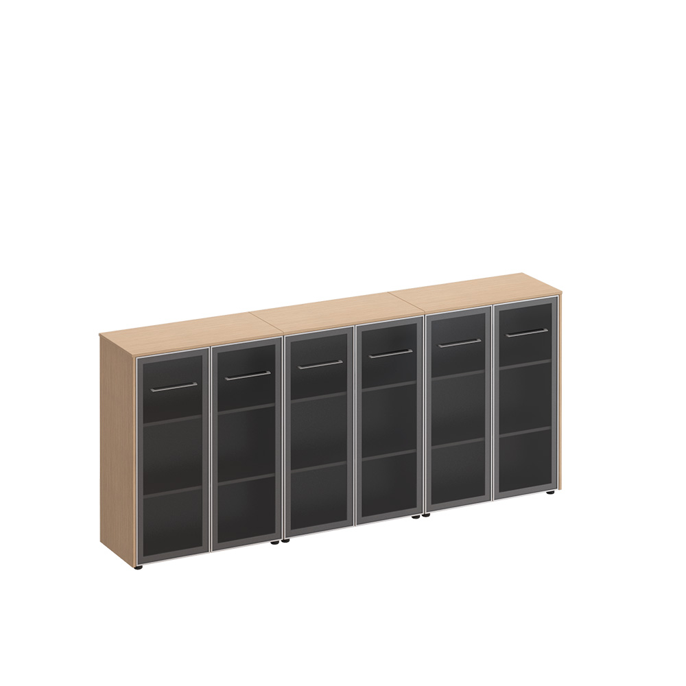 • Изделие является стенкой, состоящей из трех шкафов со стеклом для документов под общим топом