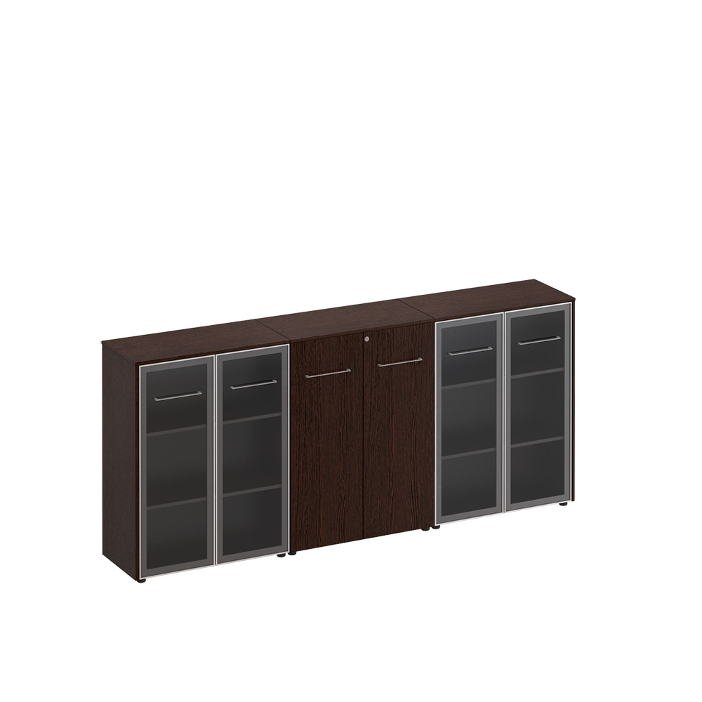 • Изделие является стенкой, состоящей из двух шкафов со стеклом для документов и закрытого шкафа для документов под общим топом.