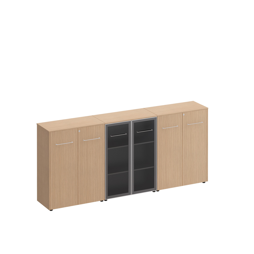 • Шкаф укомплектован четырьмя дверями из ЛДСтП с замками на правых дверях каждой секции