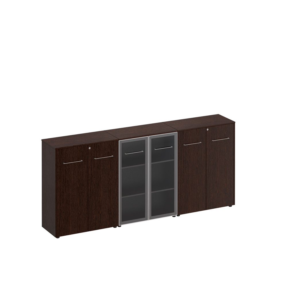 Шкаф комбинированный средний (закрытый + стекло + закрытый) венге тёмный МЕ 338 ВТ