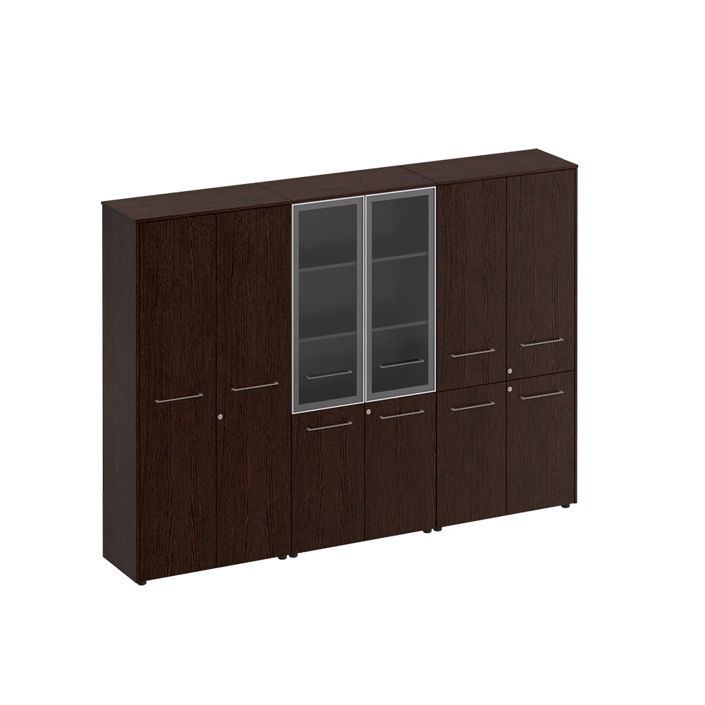 Шкаф комбинированный высокий (закрытый + стекло + одежда) венге тёмный МЕ 377 ВТ