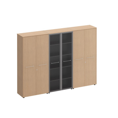 • Шкаф укомплектован четырьмя дверями из ЛДСтП с замками на правых дверях каждой секции