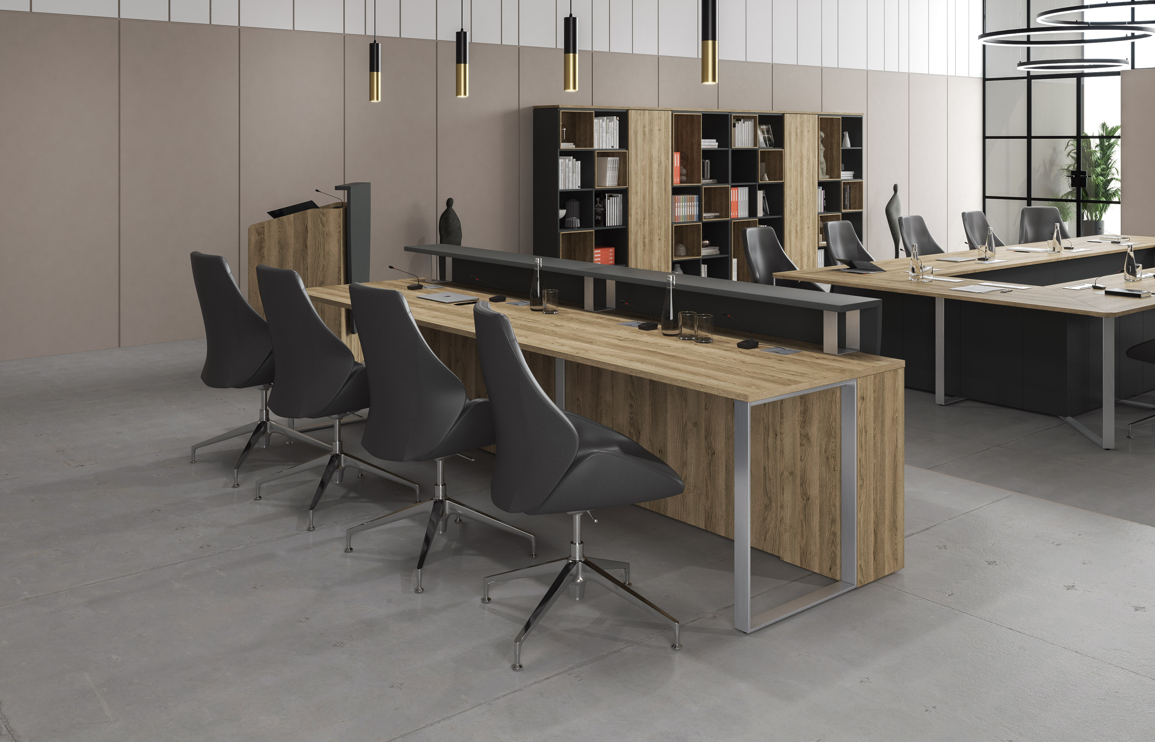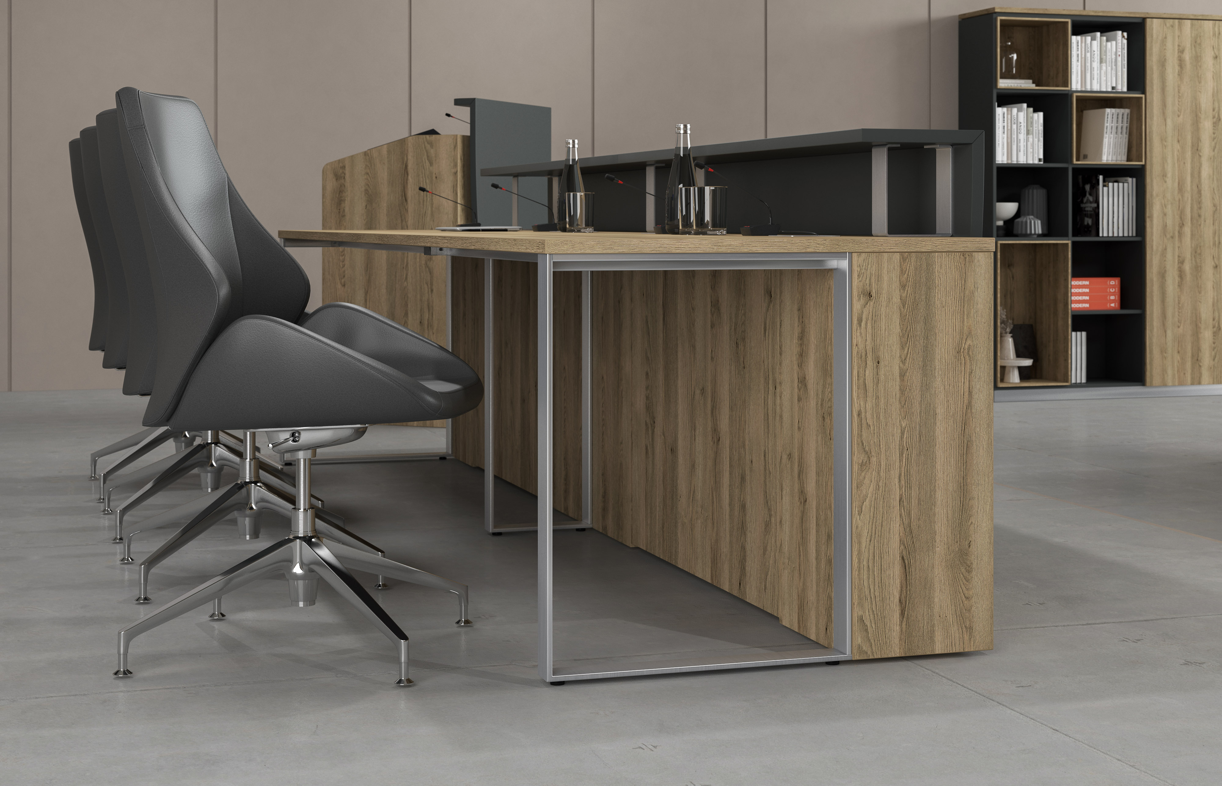 • Модульная конструкция позволяет создать стол президиума необходимой конфигурации на требуемое количество посадочных мест для конференц-залов.