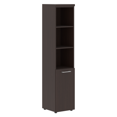 Универсальный шкаф-стеллаж TORR-Z для офисного или домашнего использования. Размеры - 432х1968х450 мм, тип - правосторонний, цвет – Венге Магия. Данная модель выполнена в современном и эффектном дизайне, благодаря чему придаст кабинету более презентабельный вид. Шкаф имеет солидный верхний топ 38 мм. Все торцевые поверхности элементов шкафа надежно защищены кромкой ПВХ 2 мм. Оснащен 5 полками, две нижние полки закрыты дверцей из ЛДСП, три верхние – открыты. На дверце установлена долговечная и стильная металлическая ручка. Конструкция шкафа оснащена прочными силовыми креплениями – эксцентриковыми стяжками. Регулируемые по высоте опоры обеспечат шкафу устойчивость на неровном полу.