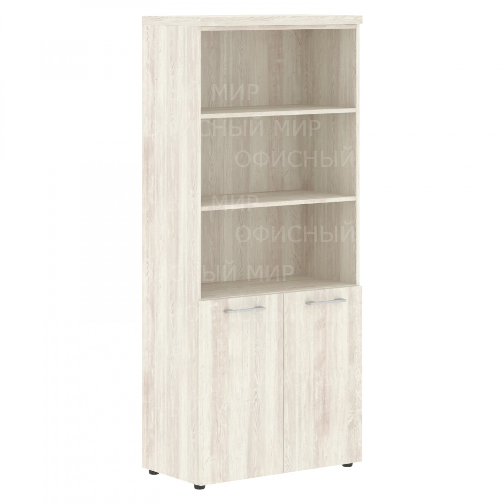 Солидный и широкий шкаф-стеллаж TORR-Z для офисного или домашнего использования. Размеры - 856х1968х450 мм, цвет – Сосна Эдмонт Z. Данная модель выполнена в современном и эффектном дизайне, благодаря чему придаст кабинету более презентабельный вид. Шкаф имеет солидный верхний топ 38 мм. Все торцевые поверхности элементов шкафа надежно защищены кромкой ПВХ 2 мм. Оснащен 5 полками, две нижние полки закрыты дверцами из ЛДСП, три верхние – открыты. На дверцах установлены долговечные и стильные металлические ручки. Конструкция шкафа оснащена прочными силовыми креплениями – эксцентриковыми стяжками. Регулируемые по высоте опоры обеспечат шкафу устойчивость на неровном полу.