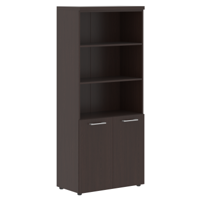 Солидный и широкий шкаф-стеллаж TORR-Z для офисного или домашнего использования. Размеры - 856х1968х450 мм, цвет – Венге Магия. Данная модель выполнена в современном и эффектном дизайне, благодаря чему придаст кабинету более презентабельный вид. Шкаф имеет солидный верхний топ 38 мм. Все торцевые поверхности элементов шкафа надежно защищены кромкой ПВХ 2 мм. Оснащен 5 полками, две нижние полки закрыты дверцами из ЛДСП, три верхние – открыты. На дверцах установлены долговечные и стильные металлические ручки. Конструкция шкафа оснащена прочными силовыми креплениями – эксцентриковыми стяжками. Регулируемые по высоте опоры обеспечат шкафу устойчивость на неровном полу.