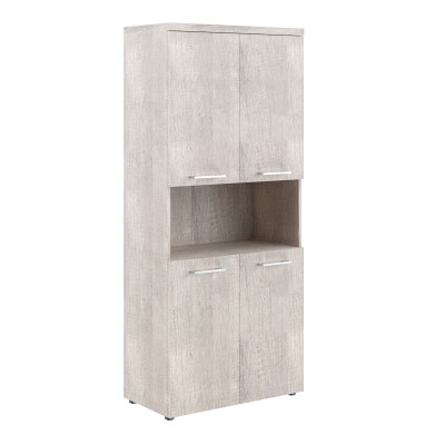 Солидный и широкий шкаф-стеллаж TORR-Z для офисного или домашнего использования. Размеры - 856х1968х450 мм, цвет – Дуб Каньон Z. Данная модель выполнена в современном и эффектном дизайне, благодаря чему придаст кабинету более презентабельный вид. Шкаф имеет солидный верхний топ 38 мм. Все торцевые поверхности элементов шкафа надежно защищены кромкой ПВХ 2 мм. Оснащен 5 полками, две нижние и две верхние полки закрыты дверцами из ЛДСП, полка посередине – открытая. На дверцах установлены долговечные и стильные металлические ручки. Конструкция шкафа оснащена прочными силовыми креплениями – эксцентриковыми стяжками. Регулируемые по высоте опоры обеспечат шкафу устойчивость на неровном полу.