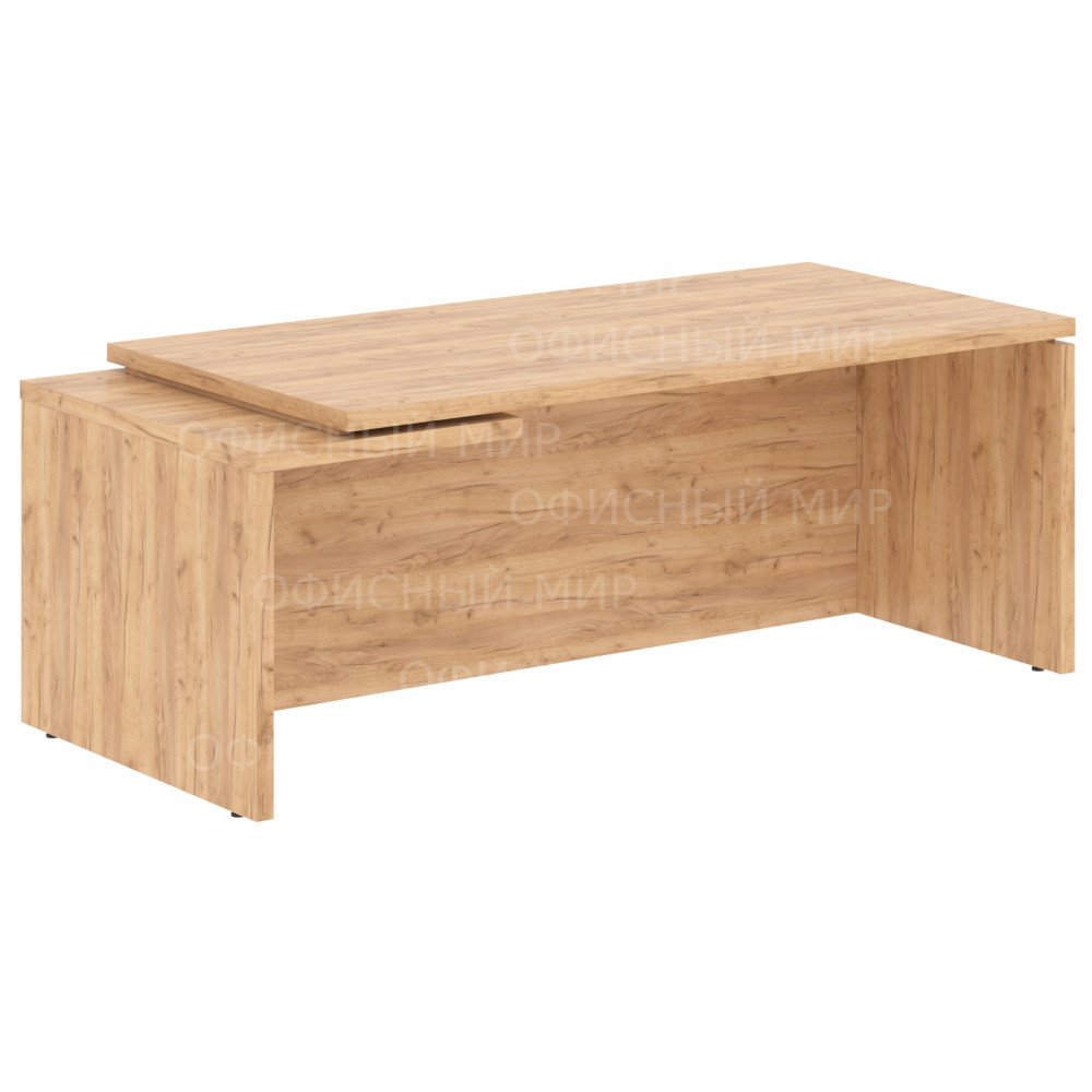 Солидный и большой рабочий стол руководителя TORR-Z для офисного или домашнего использования, размер - 2000х900х750 мм, тип – левосторонний, цвет – Дуб Девон. Оснащен надежными и долговечными опорами увеличенной ширины из ЛДСП 38 мм, которые расположены по краям стола. Между столешницей и опорами установлены специальные проставки, что создает эффект «парящей столешницы». Солидная и прочная столешница 38 мм. Все торцевые поверхности элементов стола надежно защищены кромкой ПВХ 2 мм. Конструкция стола оснащена прочными силовыми креплениями – эксцентриковыми стяжками. Регулируемые по высоте опоры обеспечат столу устойчивость на неровном полу.