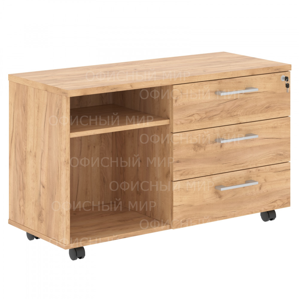 Солидная и большая приставная тумба TORR-Z для использования при оформлении современного кабинета в офисе или дома. Размеры - 1078х650х452 мм, цвет - Дуб Девон. Тумба имеет солидный верхний топ 25 мм. Удобные колесики с плавным ходом, надежная защита торцевых поверхностей - кромка ПВХ 2 мм. Тумба имеет эффектный и современный дизайн, одна ее половина выполнена в виде ящиков, вторая – открытые полочки. Количество ящиков – 3, количество полочек - 2. Ящики тумбы оснащены центральным замком. Конструкция тумбы оснащена прочными силовыми креплениями – эксцентриковыми стяжками.