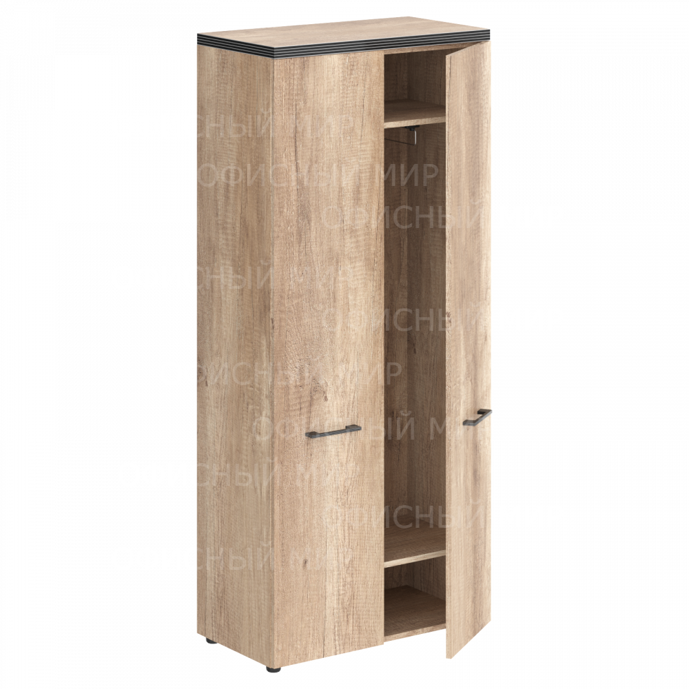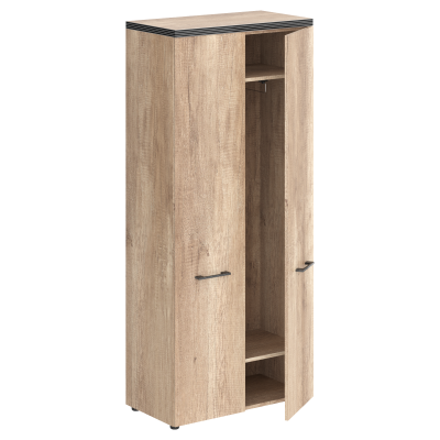 Солидный гардероб TORR для офисного или домашнего использования. Размеры - 856х1968х450 мм, цвет - Дуб Каньон. Гардероб имеет прочный верхний топ 38 мм. Все торцевые поверхности основных элементов гардероба облицованы глянцевой акриловой пленкой 2 мм с декоративными полосками внутри кромки, что придает ей стильный 3D эффект. Торцы дополнительных элементов надежно защищены кромкой ПВХ 2 мм. Данный гардероб закрывается дверцами из ЛДСП под цвет конструкции. На дверцах установлены долговечные и стильные металлические ручки. Он оснащен 2 выдвижными штангами и 2 полочками, которые расположены сверху и снизу. Конструкция гардероба оснащена прочными силовыми креплениями – эксцентриковыми стяжками. Регулируемые по высоте опоры обеспечат гардеробу устойчивость на неровном полу.