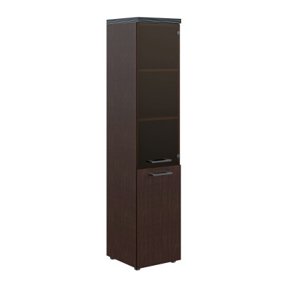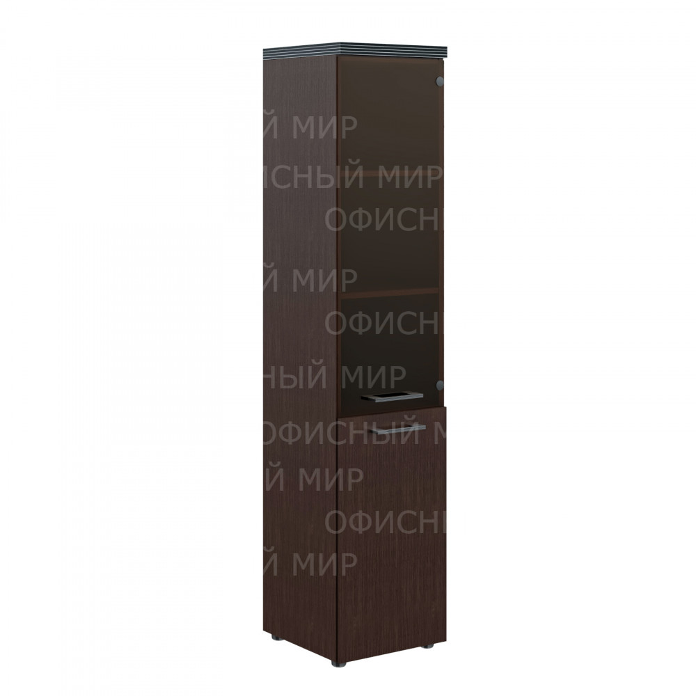 Универсальный и солидный комбинированный шкаф TORR для офисного или домашнего использования. Размеры - 432х1968х450 мм, тип - правосторонний, цвет - Венге Магия. Шкаф имеет солидный верхний топ 38 мм. Все торцевые поверхности основных элементов шкафа облицованы глянцевой акриловой пленкой 2 мм с декоративными полосками внутри кромки, что придает ей стильный 3D эффект. Торцы дополнительных элементов надежно защищены кромкой ПВХ 2 мм. Оснащен 5 полками, две нижние полки закрыты дверцей из ЛДСП, три верхние - стеклянной дверцей. На всех дверцах имеются долговечные и стильные металлические ручки. Конструкция шкафа оснащена прочными силовыми креплениями – эксцентриковыми стяжками. Регулируемые по высоте опоры обеспечат шкафу устойчивость на неровном полу.