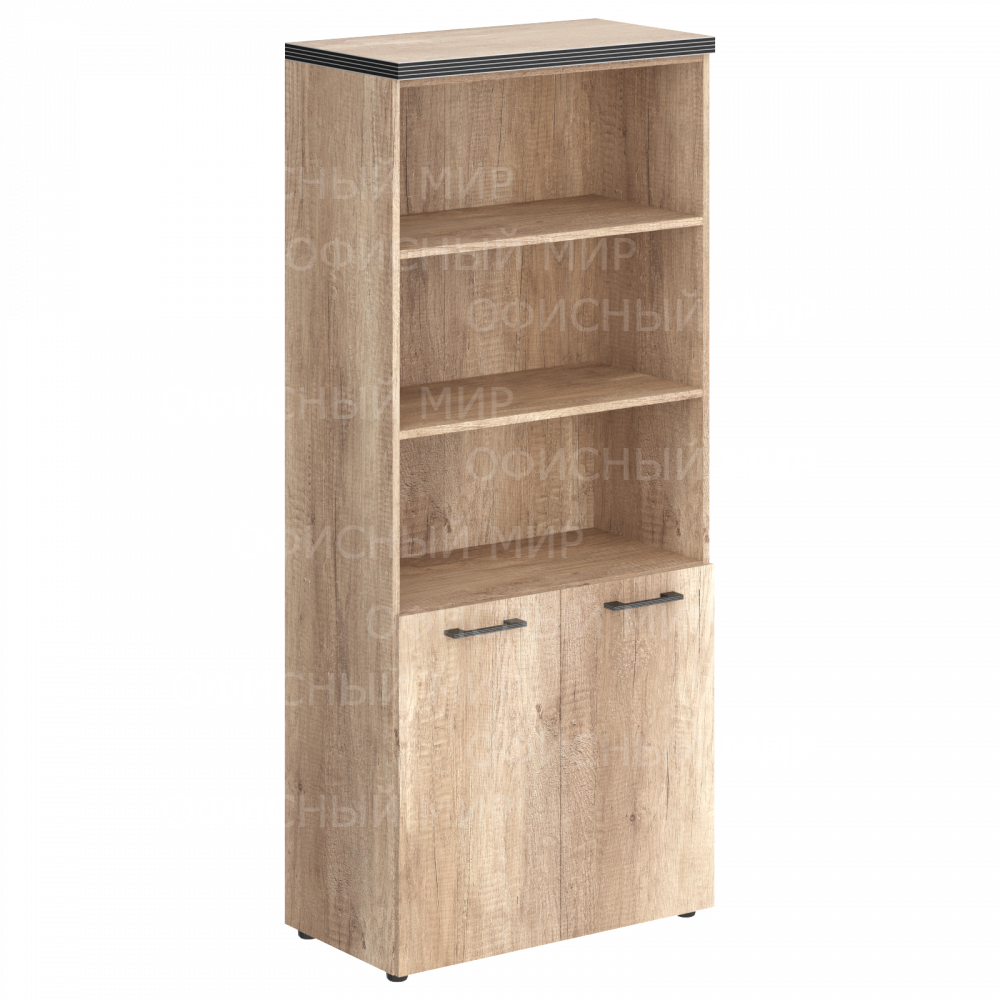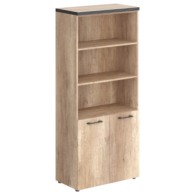 Солидный и широкий шкаф-стеллаж TORR для офисного или домашнего использования. Размеры - 856х1968х450 мм, цвет – Дуб Каньон. Шкаф имеет солидный верхний топ 38 мм. Все торцевые поверхности основных элементов шкафа облицованы глянцевой акриловой пленкой 2 мм с декоративными полосками внутри кромки, что придает ей стильный 3D эффект. Торцы дополнительных элементов надежно защищены кромкой ПВХ 2 мм. Оснащен 5 полками, две нижние полки закрыты дверцами из ЛДСП, три верхние – открыты. На дверцах установлены долговечные и стильные металлические ручки. Конструкция шкафа оснащена прочными силовыми креплениями – эксцентриковыми стяжками. Регулируемые по высоте опоры обеспечат шкафу устойчивость на неровном полу.