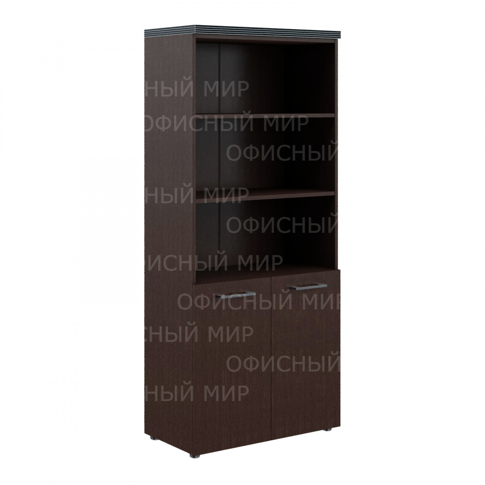 Солидный и широкий шкаф-стеллаж TORR для офисного или домашнего использования. Размеры - 854х1968х452 мм, цвет – Венге Магия. Шкаф имеет солидный верхний топ 38 мм. Все торцевые поверхности основных элементов шкафа облицованы глянцевой акриловой пленкой 2 мм с декоративными полосками внутри кромки, что придает ей стильный 3D эффект. Торцы дополнительных элементов надежно защищены кромкой ПВХ 2 мм. Оснащен 5 полками, две нижние полки закрыты дверцами из ЛДСП, три верхние – открыты. На дверцах установлены долговечные и стильные металлические ручки. Конструкция шкафа оснащена прочными силовыми креплениями – эксцентриковыми стяжками. Регулируемые по высоте опоры обеспечат шкафу устойчивость на неровном полу.