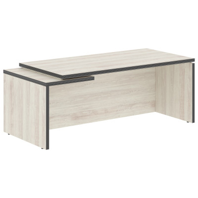 Солидный и большой рабочий стол руководителя TORR для офисного или домашнего использования, размер - 2000х900х750 мм, тип – левосторонний, цвет – Сосна Эдмонт. Оснащен надежными и долговечными опорами увеличенной ширины из ЛДСП 38 мм, которые расположены по краям стола. Между столешницей и опорами установлены специальные проставки, что создает эффект «парящей столешницы». Солидная и прочная столешница 38 мм. Все торцевые поверхности основных элементов стола облицованы глянцевой акриловой кромкой 2 мм с декоративными полосками внутри кромки, что придает ей стильный 3D эффект. Торцы дополнительных элементов надежно защищены кромкой ПВХ 2 мм. Конструкция стола оснащена прочными силовыми креплениями – эксцентриковыми стяжками. Регулируемые по высоте опоры обеспечат столу устойчивость на неровном полу.