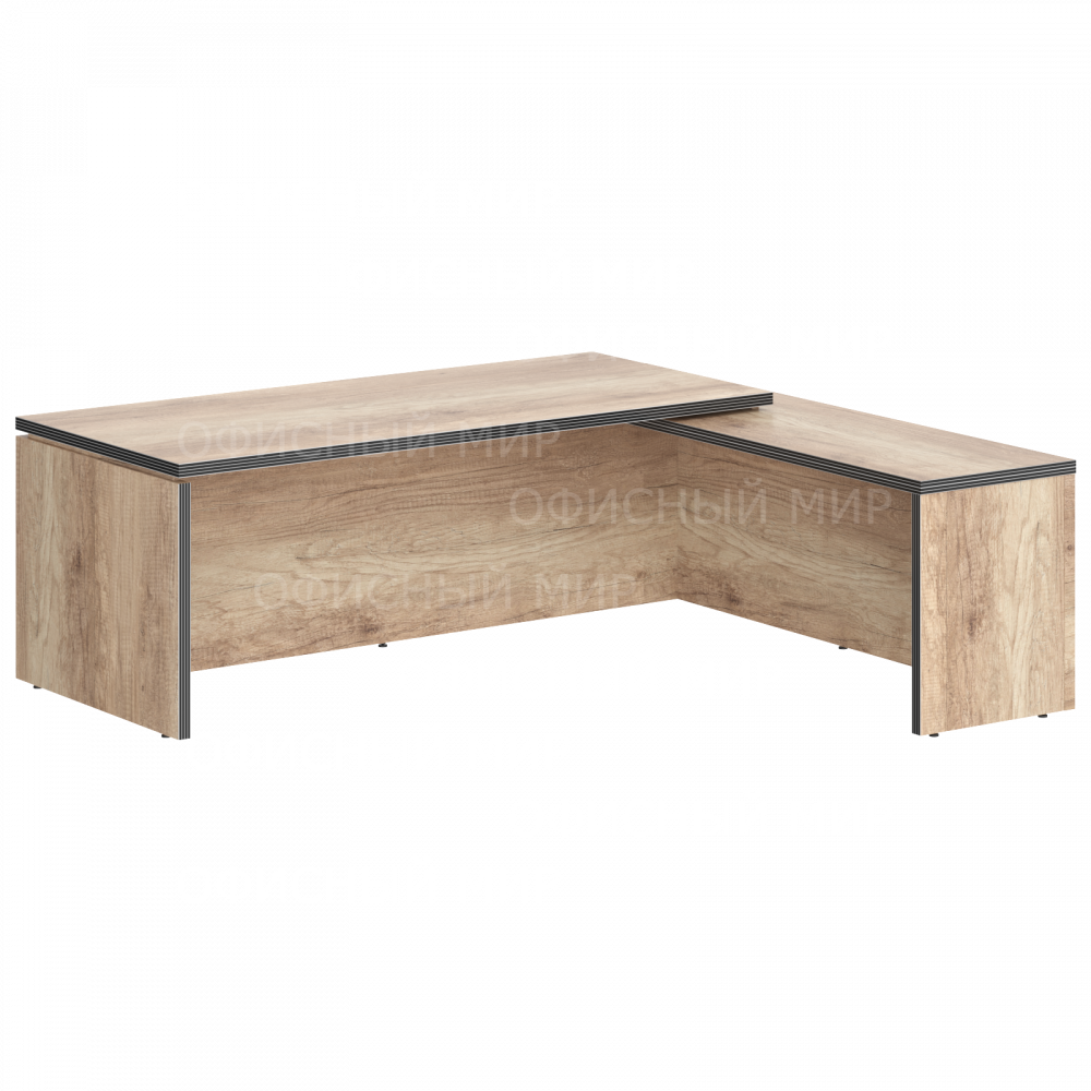 Большой угловой рабочий стол руководителя TORR для офисного или домашнего использования, размер - 2200х2000х750 мм, тип - правосторонний, цвет – Дуб Каньон. Оснащен надежными и долговечными опорами увеличенной ширины из ЛДСП 38 мм, которые расположены по краям стола. Между столешницей и опорами установлены специальные проставки, что создает эффект «парящей столешницы». Солидная и прочная столешница 38 мм. Все торцевые поверхности основных элементов стола облицованы глянцевой акриловой кромкой 2 мм с декоративными полосками внутри кромки, что придает ей 3D эффект. Торцы дополнительных элементов надежно защищены кромкой ПВХ 2 мм. Конструкция стола оснащена прочными силовыми креплениями – эксцентриковыми стяжками. Регулируемые по высоте опоры обеспечат столу устойчивость на неровном полу.