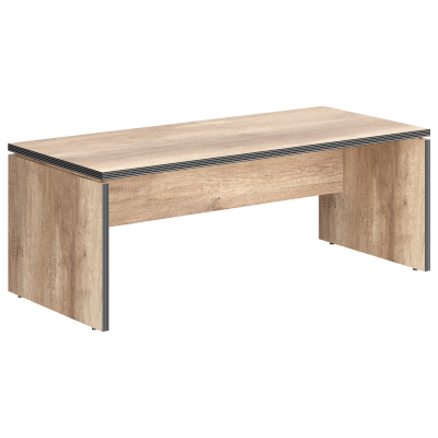 Солидный и большой рабочий стол руководителя TORR для офисного или домашнего использования, размер - 2000х900х750 мм, цвет – Дуб Каньон. Оснащен надежными и долговечными опорами увеличенной ширины из ЛДСП 38 мм, которые расположены по краям стола. Между столешницей и опорами установлены специальные проставки, что создает эффект «парящей столешницы». Солидная и прочная столешница 38 мм. Все торцевые поверхности основных элементов стола облицованы глянцевой акриловой кромкой 2 мм с декоративными полосками внутри кромки, что придает ей 3D эффект. Торцы дополнительных элементов надежно защищены кромкой ПВХ 2 мм. Конструкция стола оснащена прочными силовыми креплениями – эксцентриковыми стяжками. Регулируемые по высоте опоры обеспечат столу устойчивость на неровном полу.
