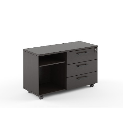 Солидная и большая приставная тумба TORR для использования при оформлении современного кабинета в офисе или дома. Размеры - 1078х650х452 мм, цвет - Венге Магия. Тумба имеет солидный верхний топ 25 мм. Удобные колесики с плавным ходом, надежная защита торцевых поверхностей - кромка ПВХ 2 мм. Тумба имеет эффектный и современный дизайн, одна ее половина выполнена в виде ящиков, вторая – открытые полочки. Количество ящиков – 3, количество полочек - 2. Ящики тумбы оснащены центральным замком. Конструкция тумбы оснащена прочными силовыми креплениями – эксцентриковыми стяжками.