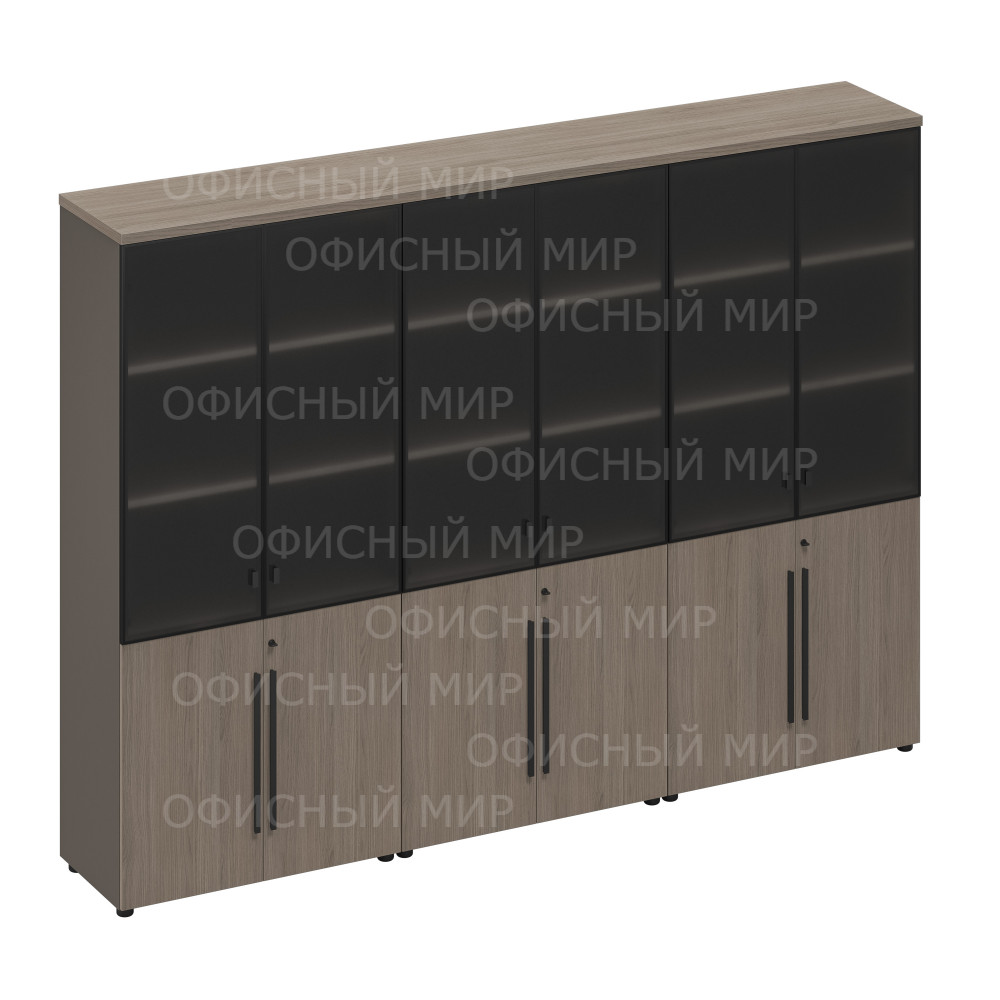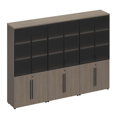 Шкаф для документов со стеклянными дверями (стенка из 3 шкафов) РС 328 ДЧ/ЛС дуб виченца/лава серая