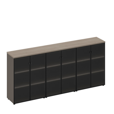 Шкаф для документов средний со стеклянными дверями (стенка из 3 шкафов) РС 311 ДЧ/ЛС дуб виченца/лава серая