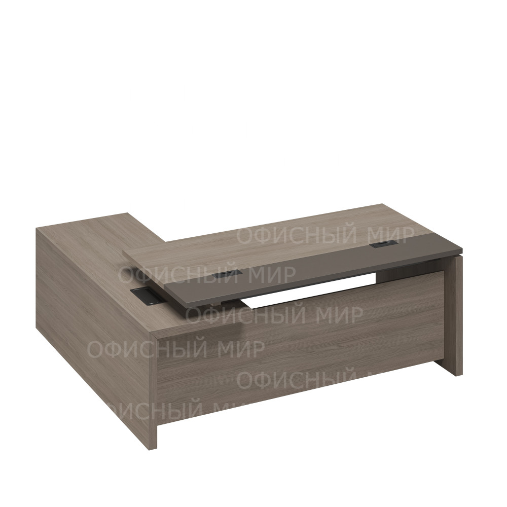 Стол руководителя с кабель-каналами с брифинг-приставкой боковой правый РС 130 ДЧ/ЛС дуб виченца/лава серая