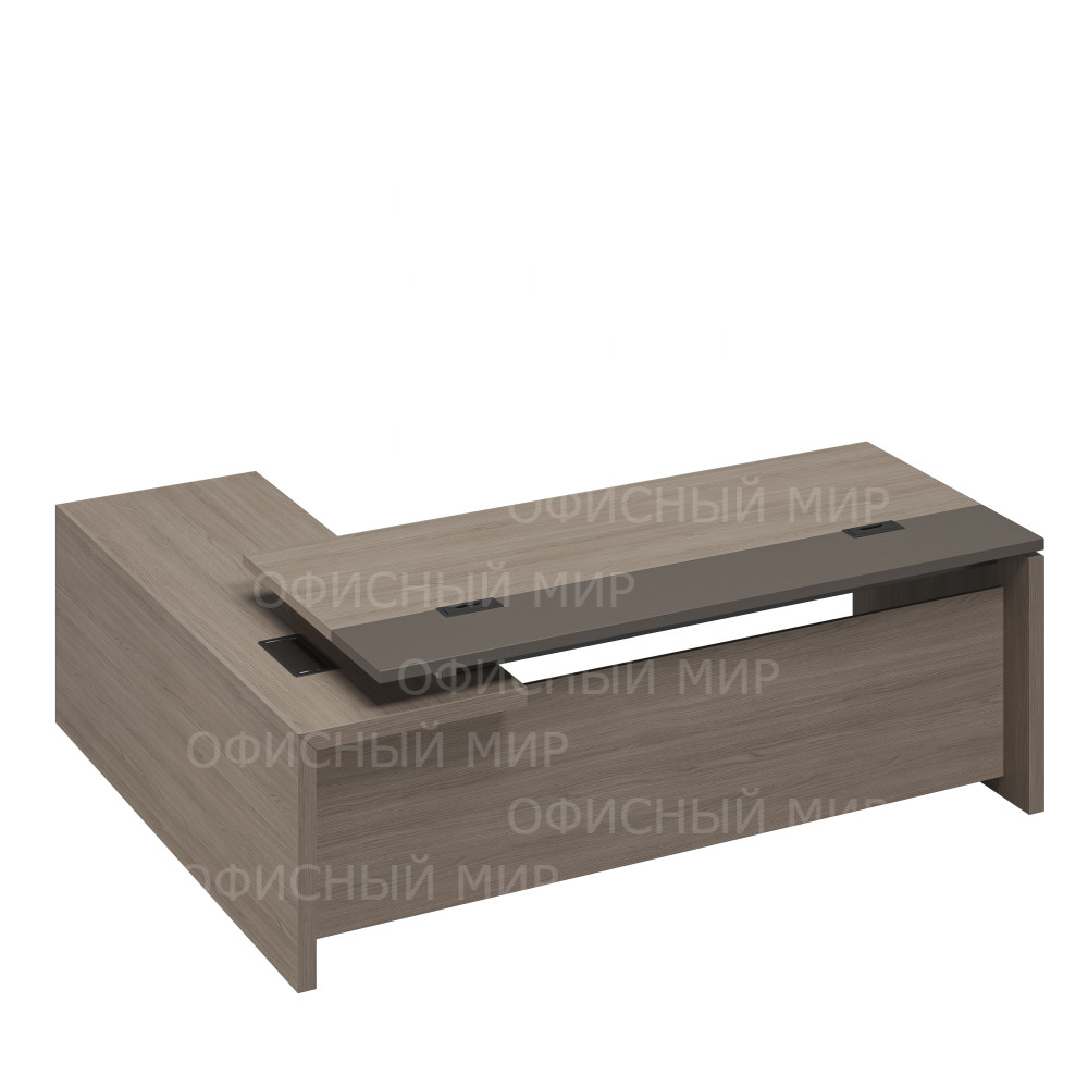 Стол руководителя с кабель-каналами с брифинг-приставкой боковой правый РС 132 ДЧ/ЛС дуб виченца/лава серая
