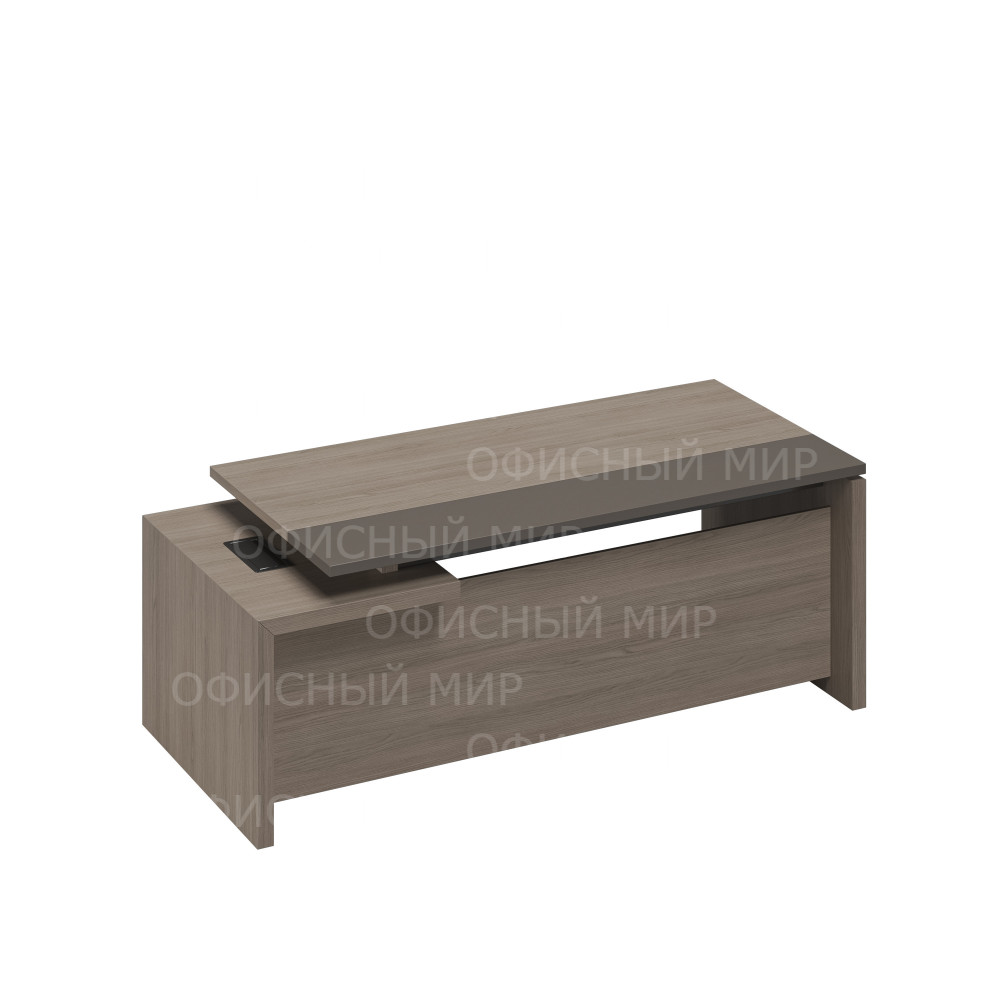 Стол руководителя с тумбой подвесной 2-ящичной с замком правый РС 110 ДЧ/ЛС дуб виченца/лава серая