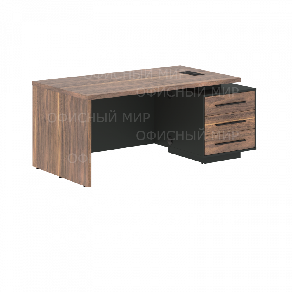 Стол руководителя с тумбой VRCT 1890(R) Американский орех/Черный матовый/Яшма черный 1800х900х750 VE