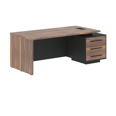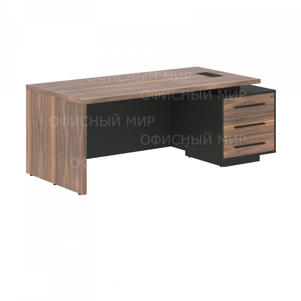 Стол руководителя с тумбой VRCT 2090(R) Американский орех/Черный матовый/Яшма черный 2000х900х750 VE