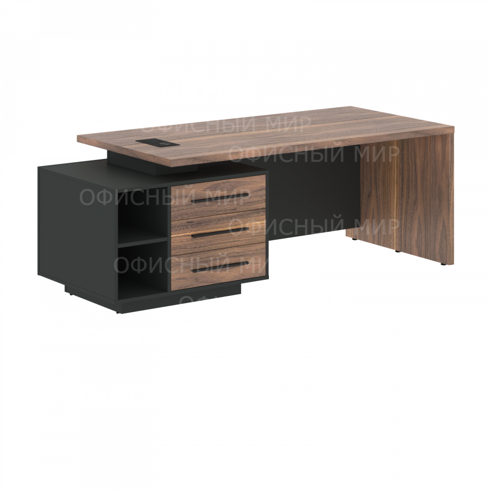 Стол руководителя с тумбой VRCT 2190(L) Американский орех/Черный матовый/Яшма черный 2100х900х750 VE