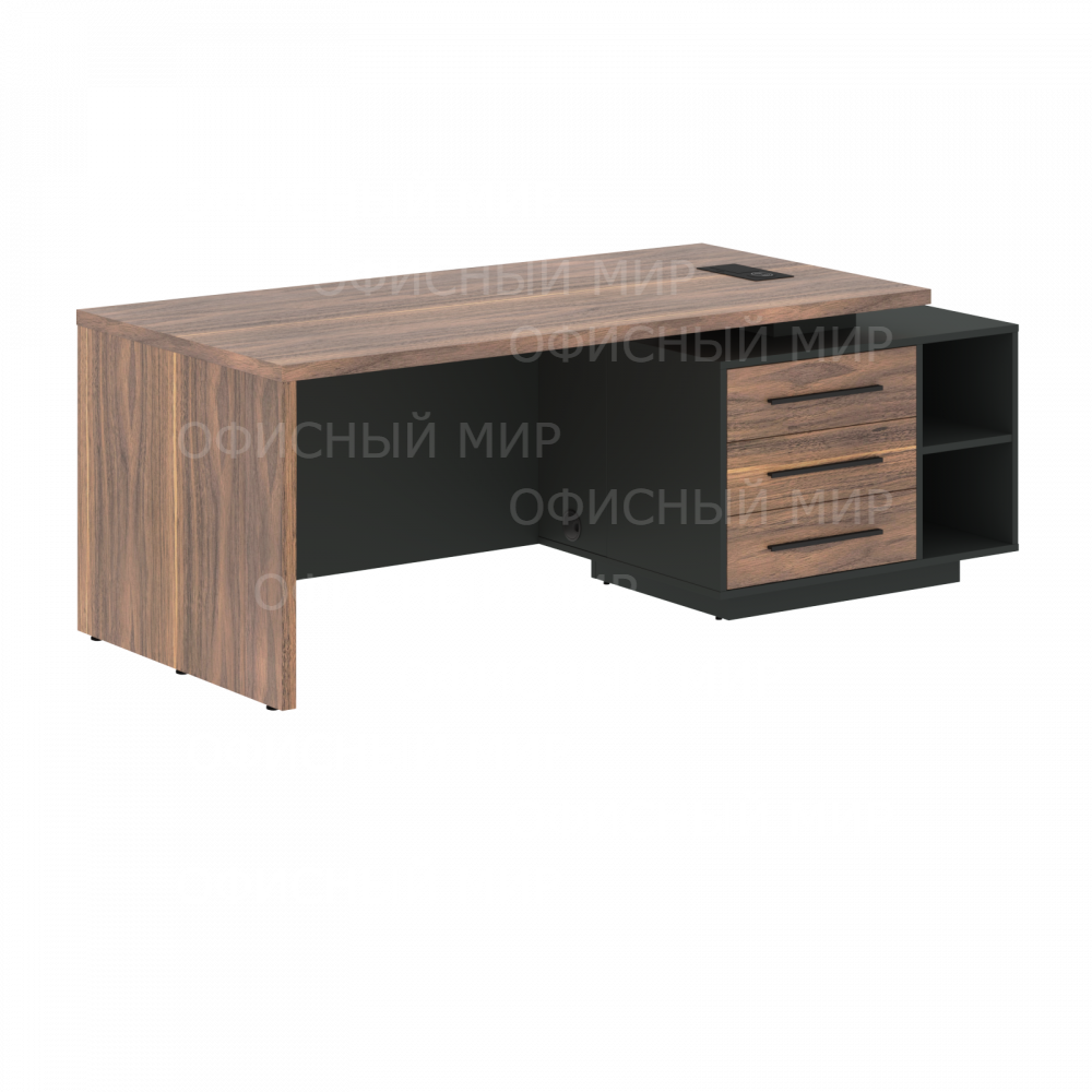 Стол руководителя с тумбой VRCT 2190(R) Американский орех/Черный матовый/Яшма черный 2100х900х750 VE