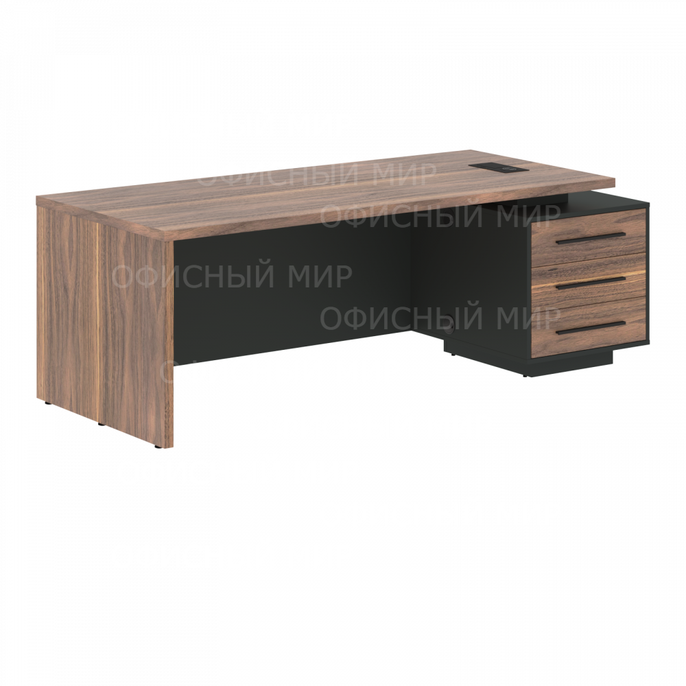 Стол руководителя с тумбой VRCT 2290(R) Американский орех/Черный матовый/Яшма черный 2200х900х750 VE