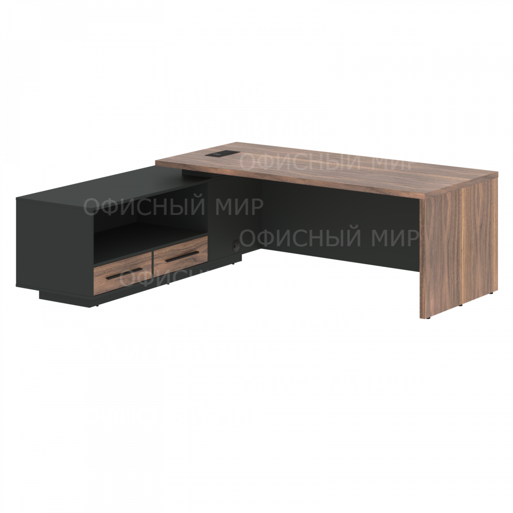 Стол руководителя с тумбой VRCT 2319(L) Американский орех/Черный матовый/Яшма черный 2300х1900х750 V