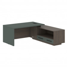 Стол руководителя с тумбой VCT 2119(L) Нефрит/Черный матовый/Дуб Сильвер 2100х1900х750 VELION