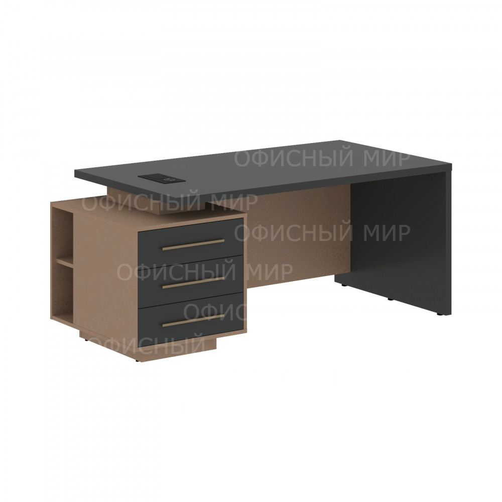 Стол руководителя с тумбой VCT 1890(L) Яшма черный/Бронза браш/Кобра 1800х900х750 VELION