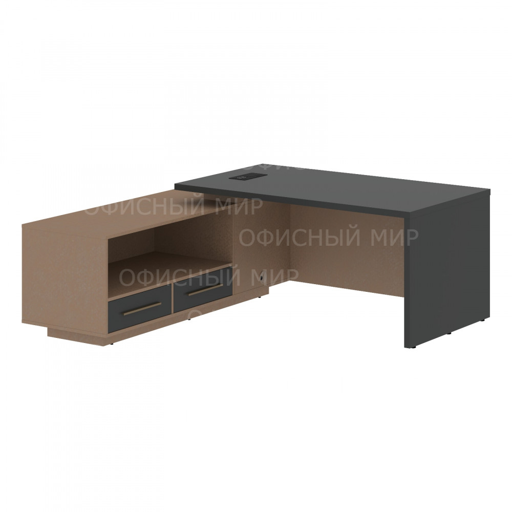 Стол руководителя с тумбой VCT 1919(L) Яшма черный/Бронза браш/Кобра 1900х1900х750 VELION